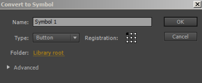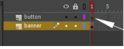 - Двойной клик по прямоугольнику. Во вкладке Timeline нажать левой клавишей мыши на кадр Up и, не отпуская кнопку перетащить кадр на Hit.