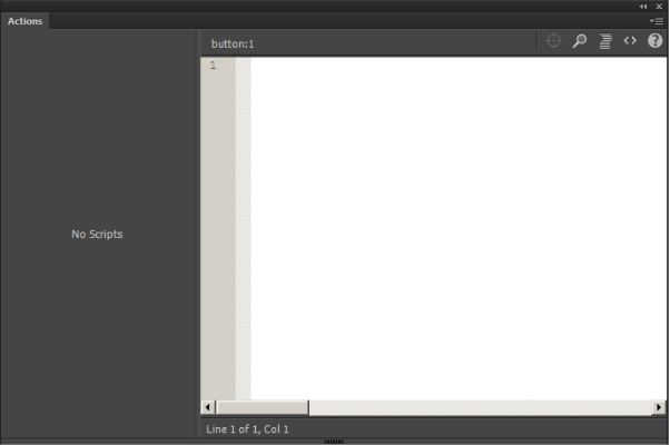 - Выйти на основную сцену баннера, кликом выделить кнопку ad_exit_button и нажать F9. Откроется панель Actions.