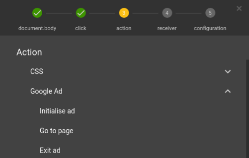 - В пункте Action выбрать Google Ad, затем Exit Ad